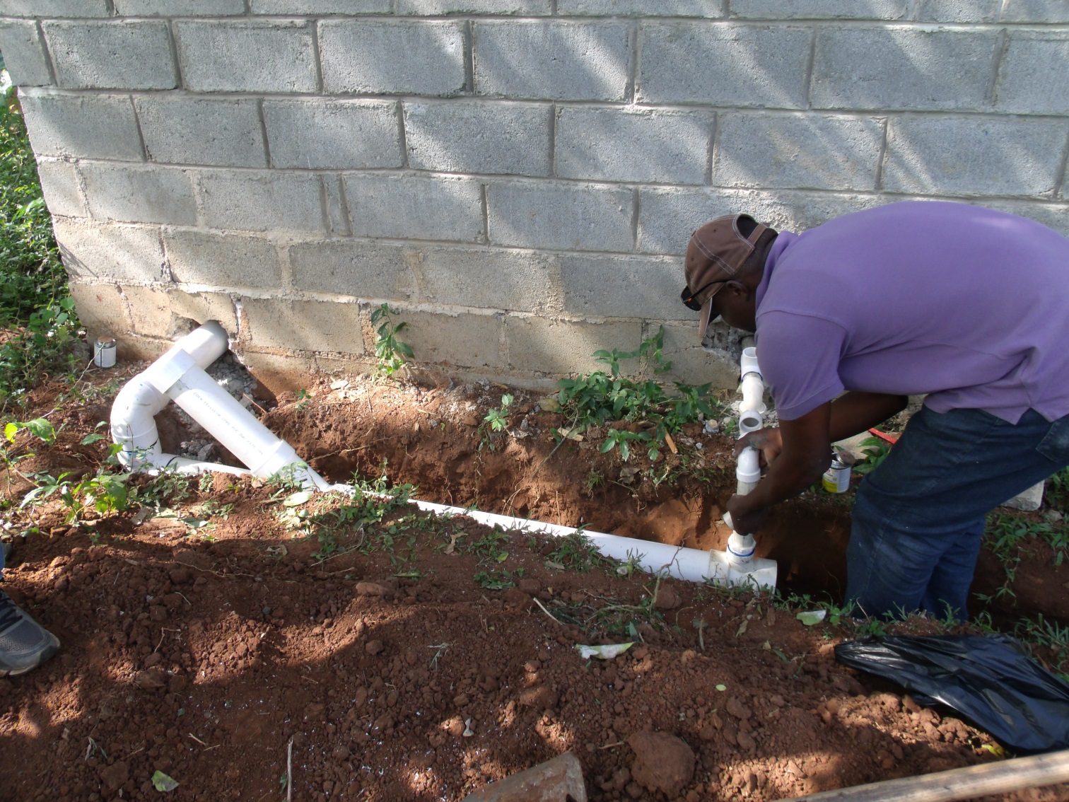 Don just called me outside and said, picture time... so have to include a picture of Belfort, one of our kids, who is now a plumber, getting the plumbing in for Vero's new bathroom.